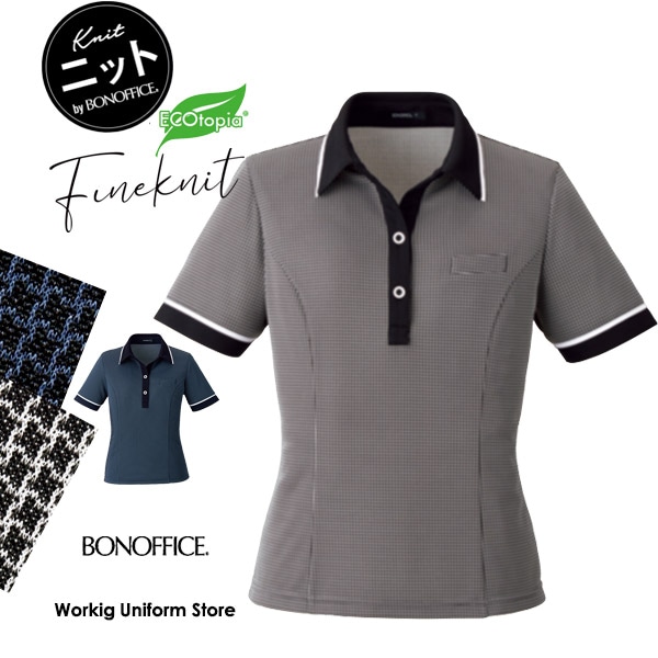 ボンオフィス事務服 半袖ポロニット AD8807 タイニーギンガムニット 【エコ素材ニット】