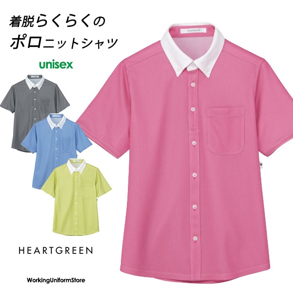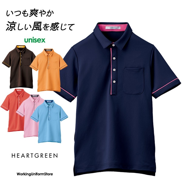 ハートグリーン 介護ユニフォーム 男女共用 半袖ポロシャツ HSP017 リサイクルスムース【グリーン購入】