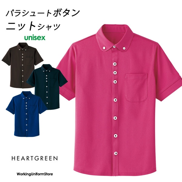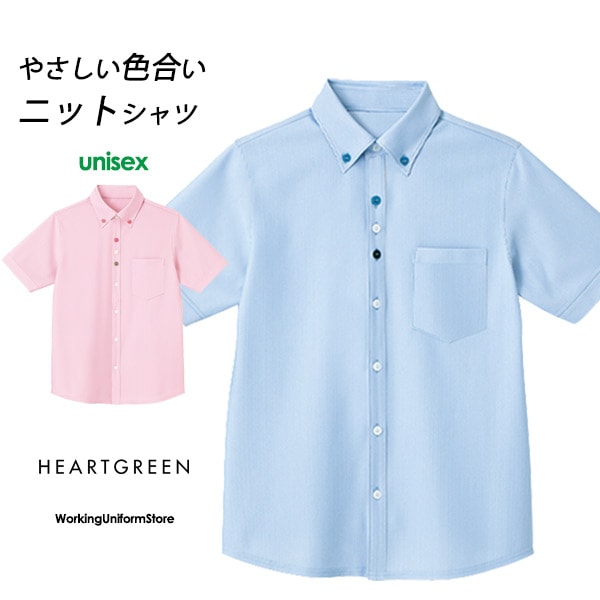 介護ユニフォーム 男女共用 半袖 ニットシャツ HM-2659 ワッフルトリコット ハートグリーン
