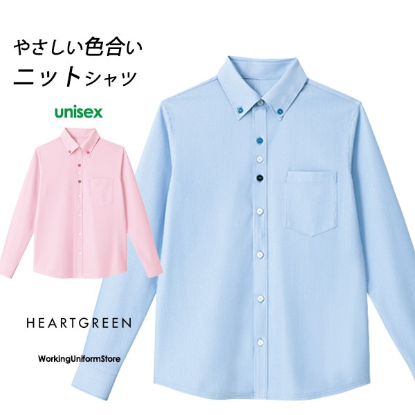 介護ユニフォーム 男女共用長袖 ニットシャツ HM-2658 ワッフルトリコット ハートグリーン