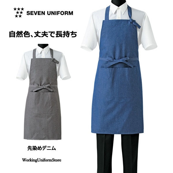 胸当て付エプロン 男女兼用 CT2395 先染めデニム セブンユニフォーム