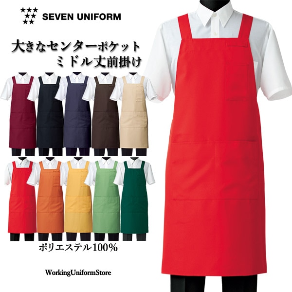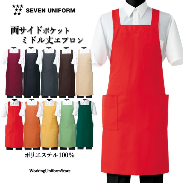 【ミドル丈】エプロン CT2362 ツイル 飲食店 物品販売 セブンユニフォーム