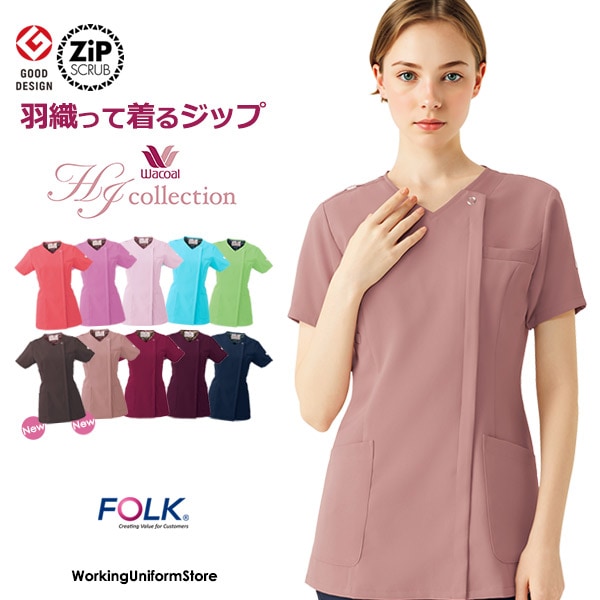 ナース服ワコールHIコレクション レディースジップスクラブ HI704 フォーク FOLK