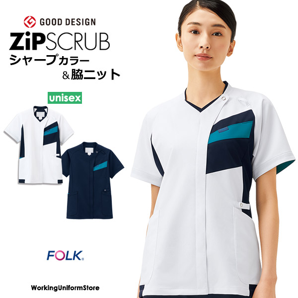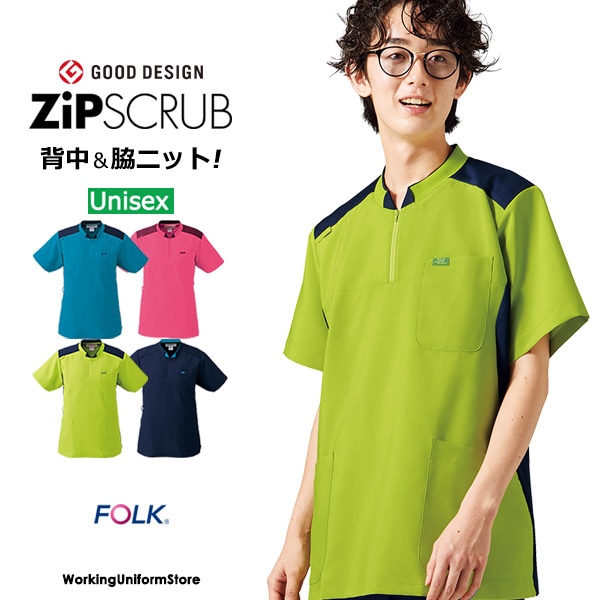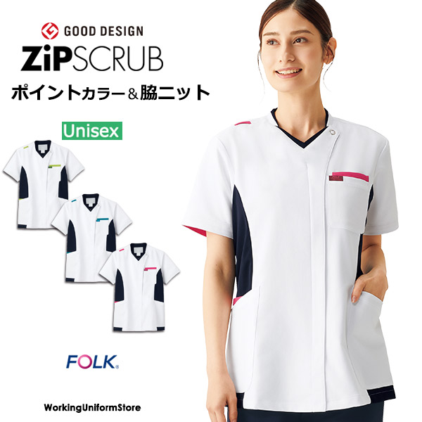 フォーク 男女共用 ジップスクラブ 7100SC ノンPUストレッチ 医療白衣
