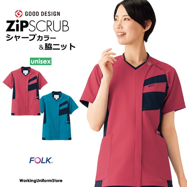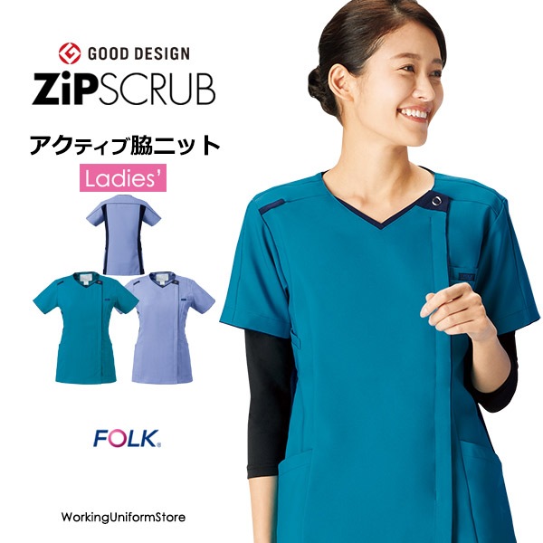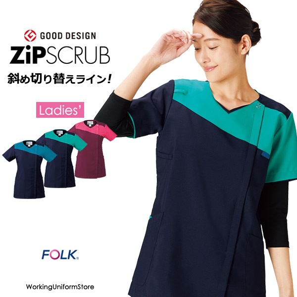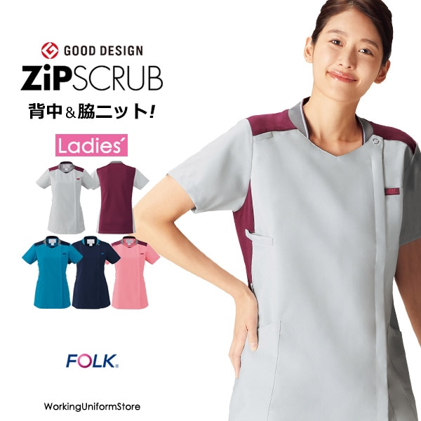 フォーク レディース ジップスクラブ 7101SC ノンPUストレッチ ナース服