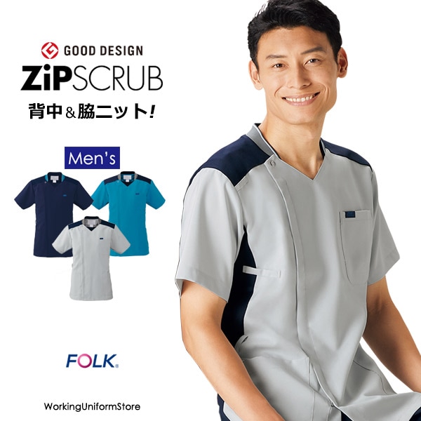 医療白衣 メンズジップスクラブ 7058SC イリアスマスト フォーク