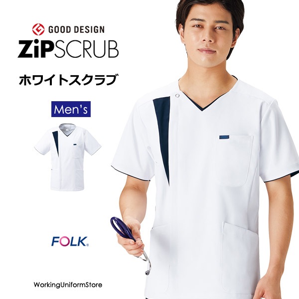 医療白衣 メンズジップスクラブ 7044SC イリアスマスト フォーク