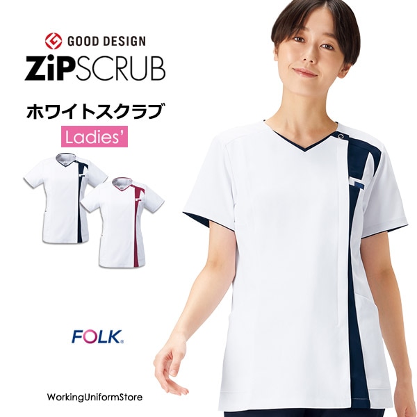 医療 白衣 レディースジップスクラブ 7048SC イリアスマスト フォークFOLK