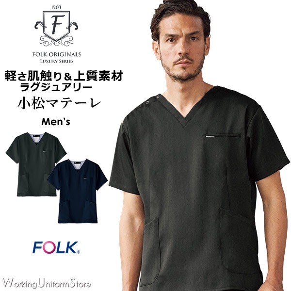 【ラグジュアリー】医療白衣 メンズ スクラブ 7077SC ストローギャバ フォーク