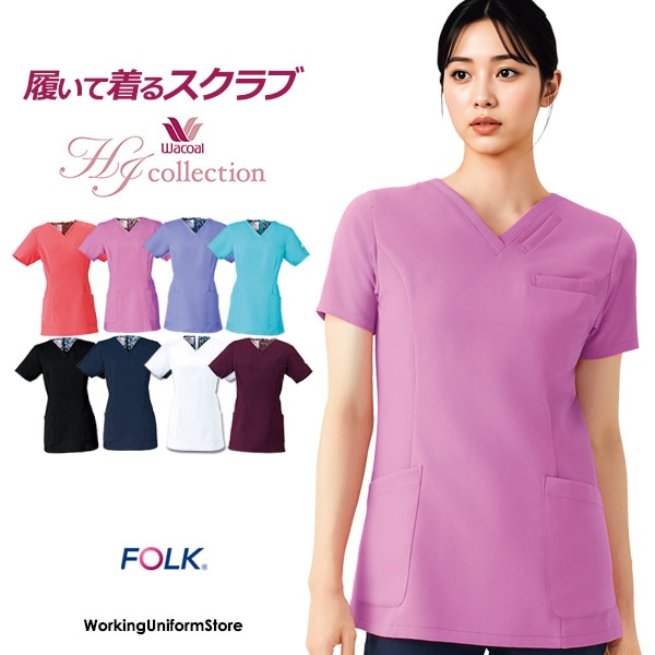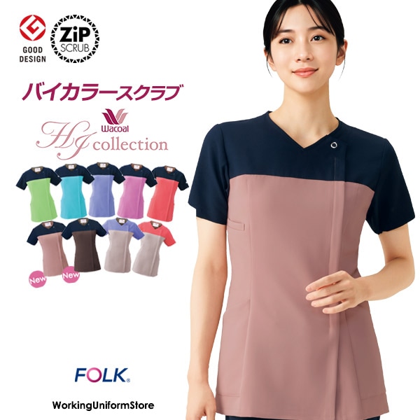 ナース服ワコールHIコレクション レディースジップスクラブ HI704 フォーク FOLK