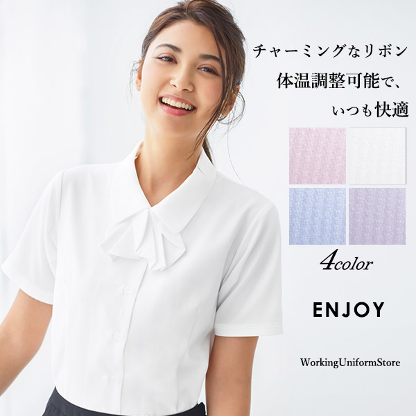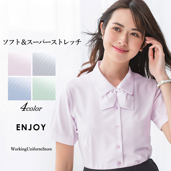 事務服 リボンブラウス半袖 ESB406 エンジョイ ソフトカルゼストレッチ