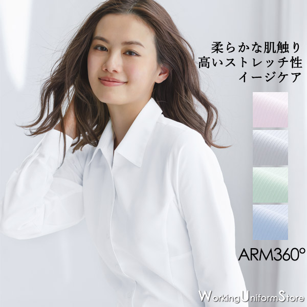 事務服 シャツブラウス 長袖 EWB385 エンジョイ ソフトカルゼストレッチ