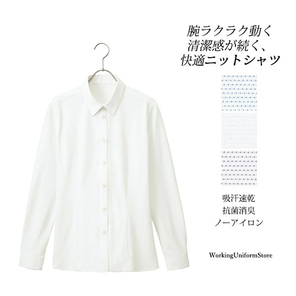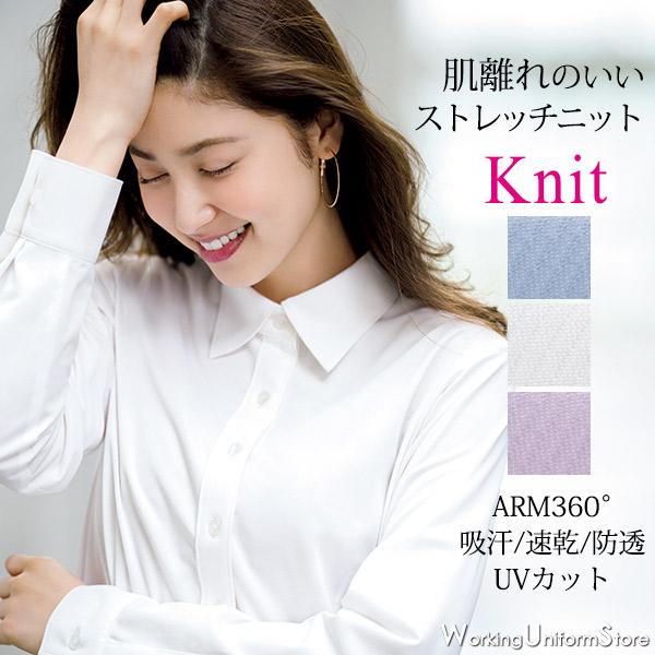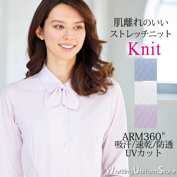 【抗菌 消臭 ニット】事務服 長袖シャツブラウス AR1486 ドットニット アルファピア