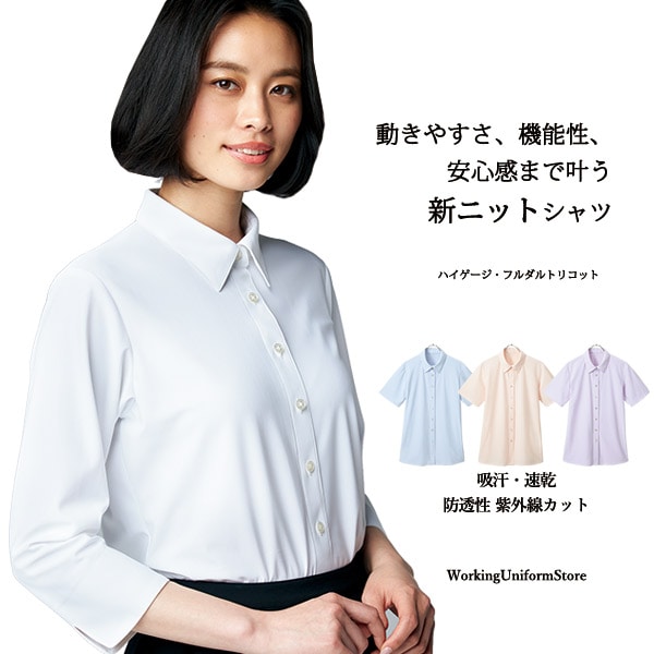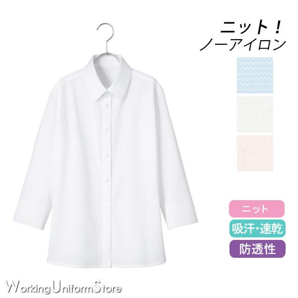 事務服 ノーアイロン【ニット】 七分袖シャツブラウス AR1529 ハイゲージフルダルトリコット アルファピア