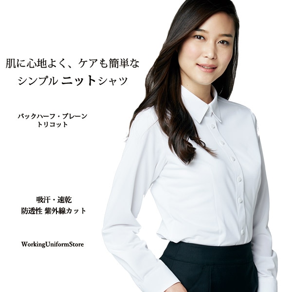 事務服 【形態安定 伸縮性】 長袖シャツブラウス AR1488 バックハーフプレーントリコット アルファピア
