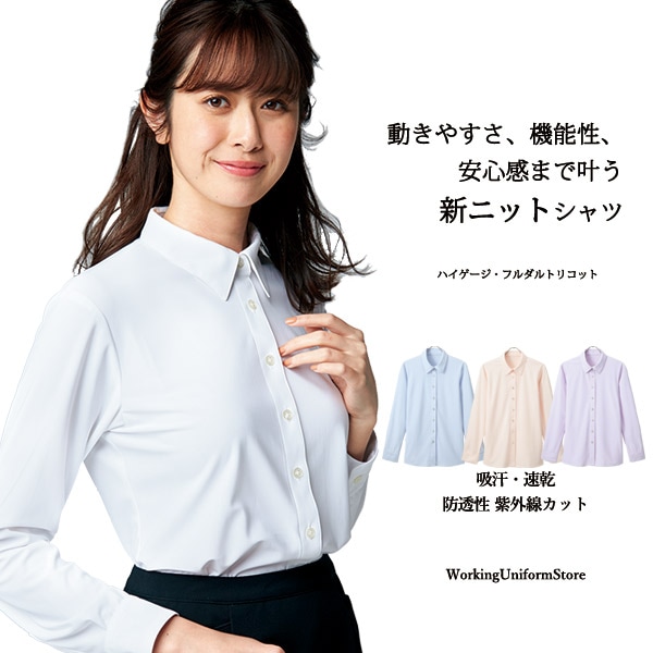 事務服 ノーアイロン【ニット】 長袖シャツブラウス AR1429 ハイゲージフルダルトリコット アルファピア