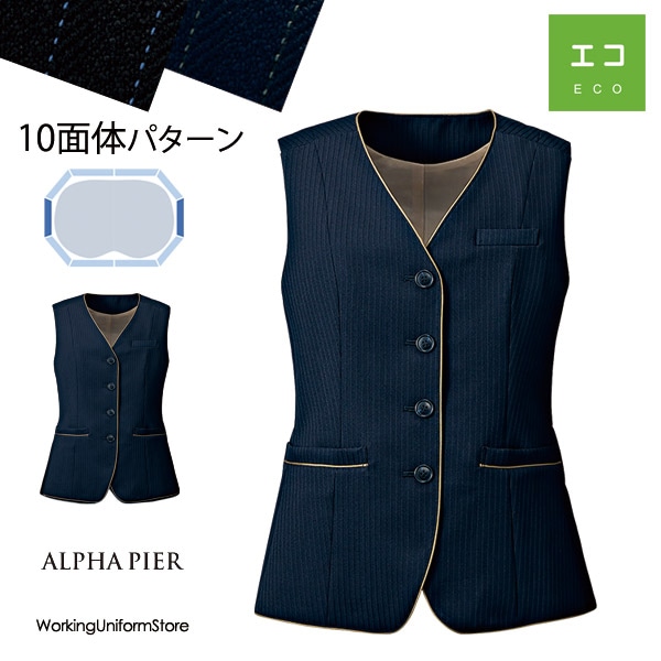 事務服 【10面体パターン】長め丈ベスト AR2898 オネストストライプ アルファピア