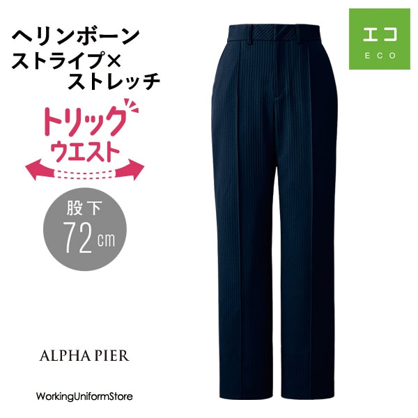 事務服 【トリックウエスト】ストレートパンツ AR5898 オネストストライプ アルファピア