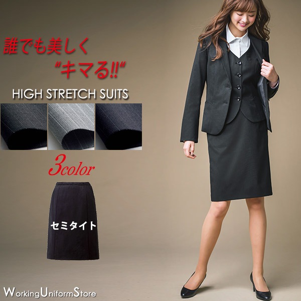 【オールフィット】事務服 セミタイトスカート EAS714 ハイストレッチウール エンジョイ ビジネススーツ エンジョイ