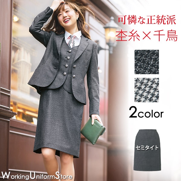 事務服 セミタイトスカート EAS720 メランジェ千鳥 エンジョイ