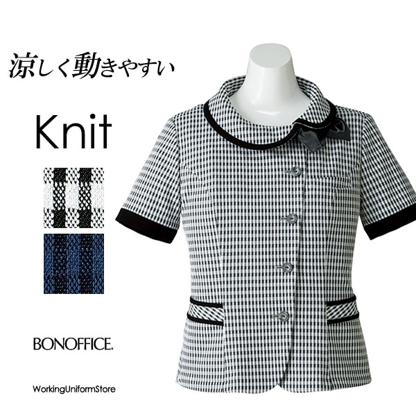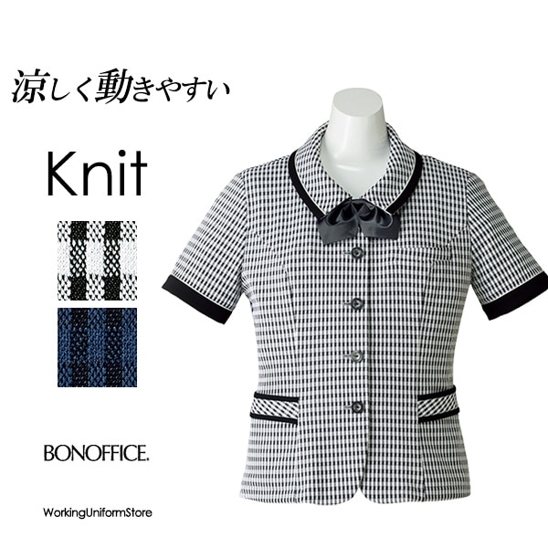 事務服 半袖 オーバーブラウス AJ0836 トリアセチェックニット ボンマックス