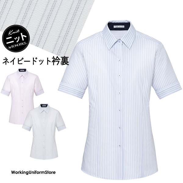 事務服 半袖 【ニット】シャツブラウス RB4554 ストライプニット ボンオフィス
