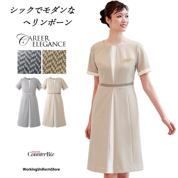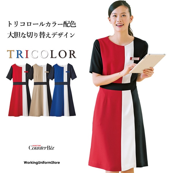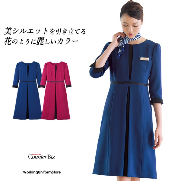 カウンタービズ受付制服 ワンピース 7745 二重織ストレッチツイル コスメ 営業職