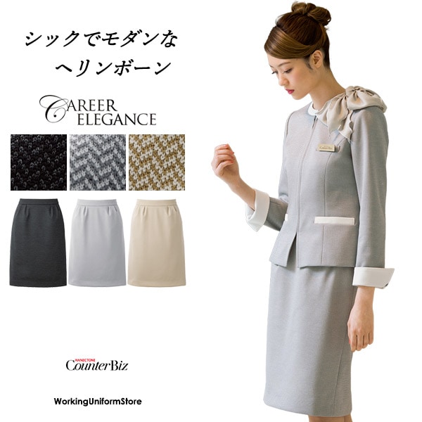 【ツイード調ニット】受付 タイトスカート 9852 ヘリンボーンニット接客 キャリアエレガンス カウンタービズ