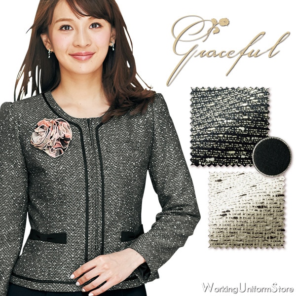 事務服 ジャケット 81680 ミックスツイード アンジョア en joie