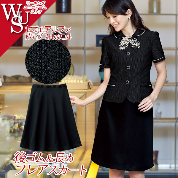 事務服 後ゴムフレアースカート 51515 セオRアルファアクティブストレッチニット アンジョア
