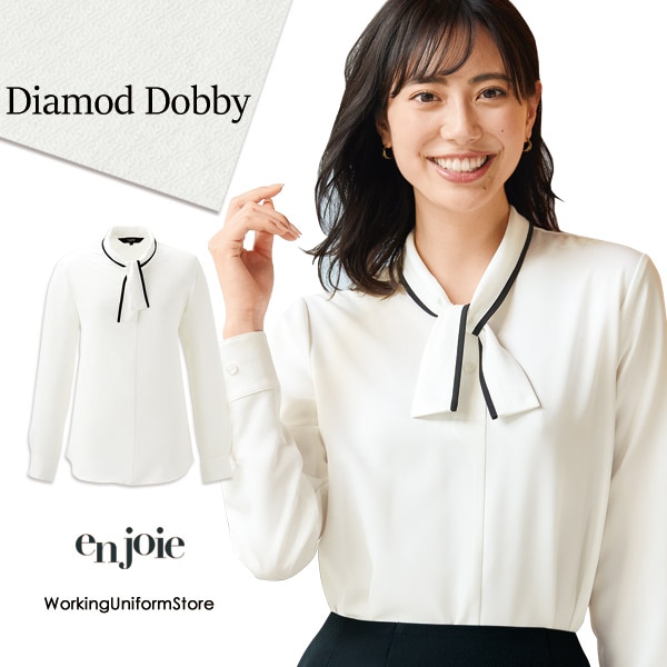 事務服 長袖ボウタイプルオーバーブラウス 01232 ダイヤドビー アンジョア
