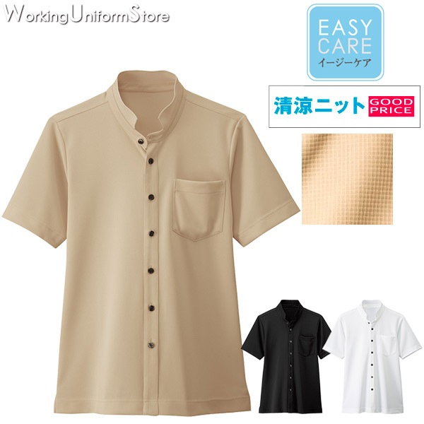 飲食店 男女兼用 スタンドカラー半袖 シャツ 23304 ストレッチドット ボンユニ