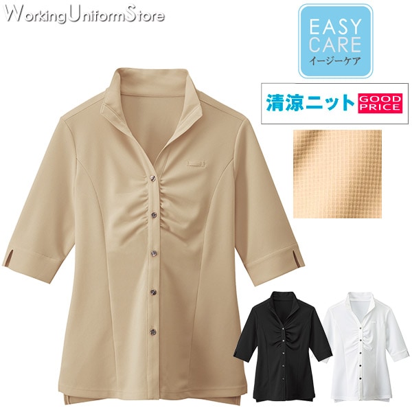 ボンユニ レディースシャツ七分袖 23244 ソフトダンボールニット 飲食店 制服