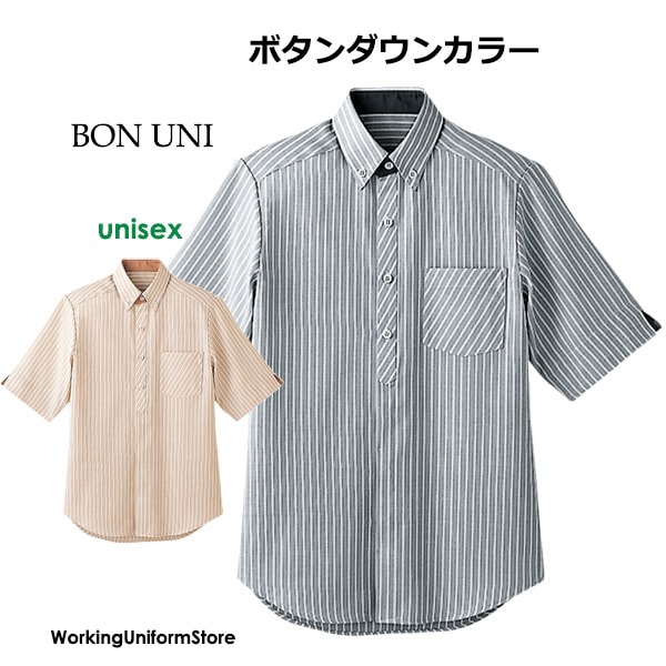 飲食店 男女兼用 ボタンダウンシャツ 半袖 23303 ストライプ ボンユニ