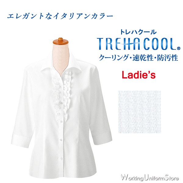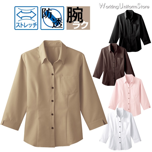 飲食店 女性用 七分袖ベルカラーシャツ 34207 ストレッチドット ボンユニ