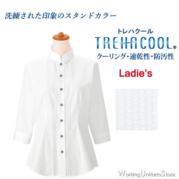 飲食店 女性用 イタリアンカラー七分袖 シャツ 34208 ストレッチドット ボンユニ