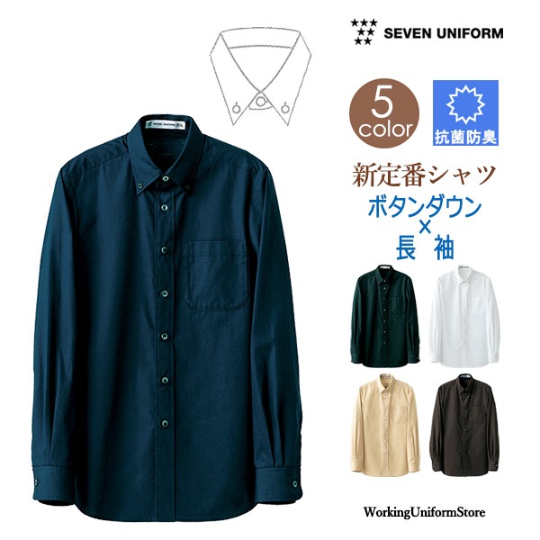 サービス&飲食店 男女兼用 長袖【ボタンダウン】シャツ CH4453 ブロード セブンユニフォーム
