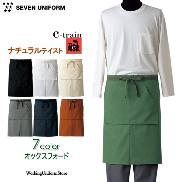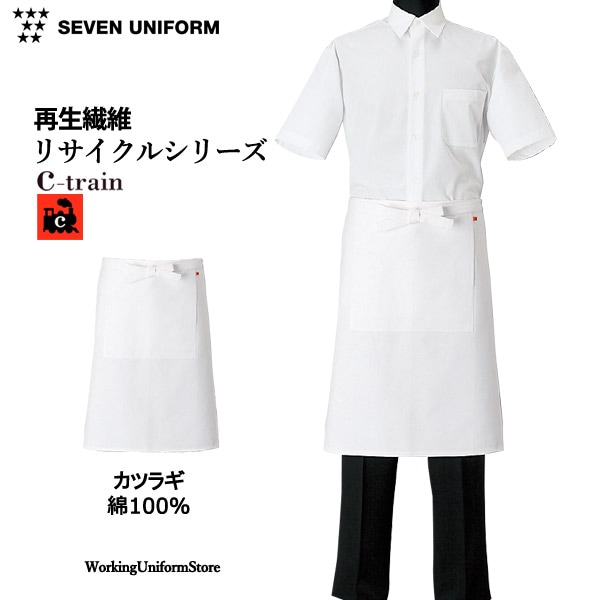 セブンユニフォーム 男女兼用 前掛エプロン QT7374 二重織 飲食店【シートレインC-train】