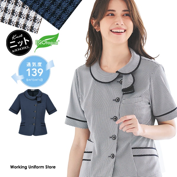 ボンオフィス事務服 半袖オーバーブラウス AJ0857 タイニーギンガムニット 【エコ素材ニット】